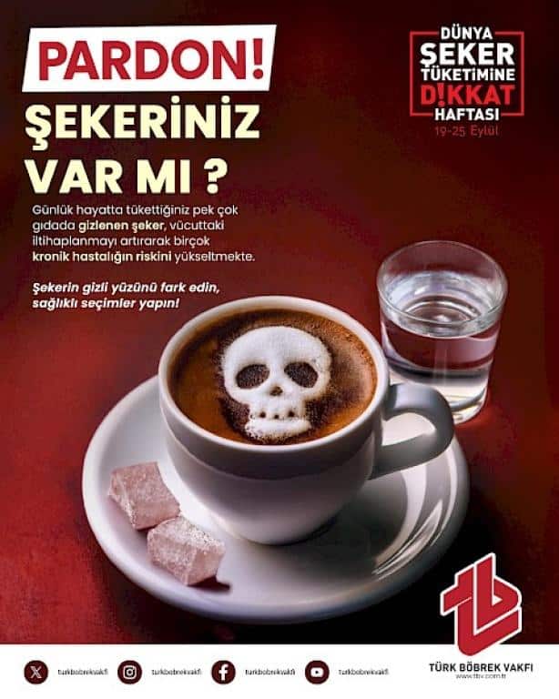 Aşırı şeker tüketiminin insan sağlığını olumsuz etkilediği, obeziteden hipertansiyona, kalp-damar hastalıklarından kronik böbrek yetmezliğine ve depresyona kadar birçok hastalığı tetiklemesi ile devletin sağlık giderlerini arttırması gerçeğinden yola çıkan Türk Böbrek Vakfı, 19–25 Eylül tarihlerini “Dünya Şeker Tüketimine Dikkat Haftası” olarak planlanmıştır.