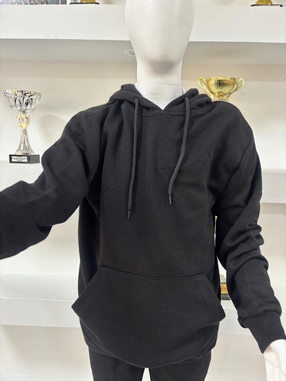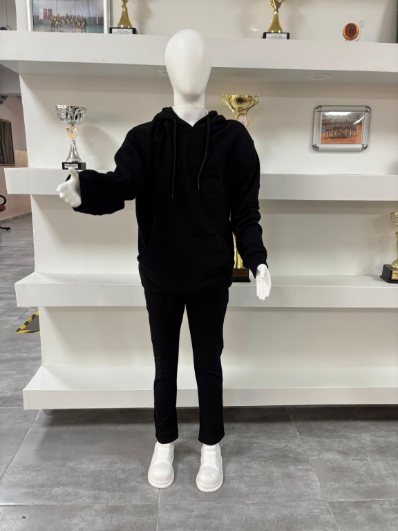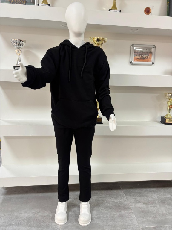 KAPÜŞONLU SİYAH SWEATSHIRT: ÜRÜNÜN ÜZERİNDE HERHANGİ BİR ÖZEL İŞARET, BASKI, DESEN OLMAYACAKTIR.